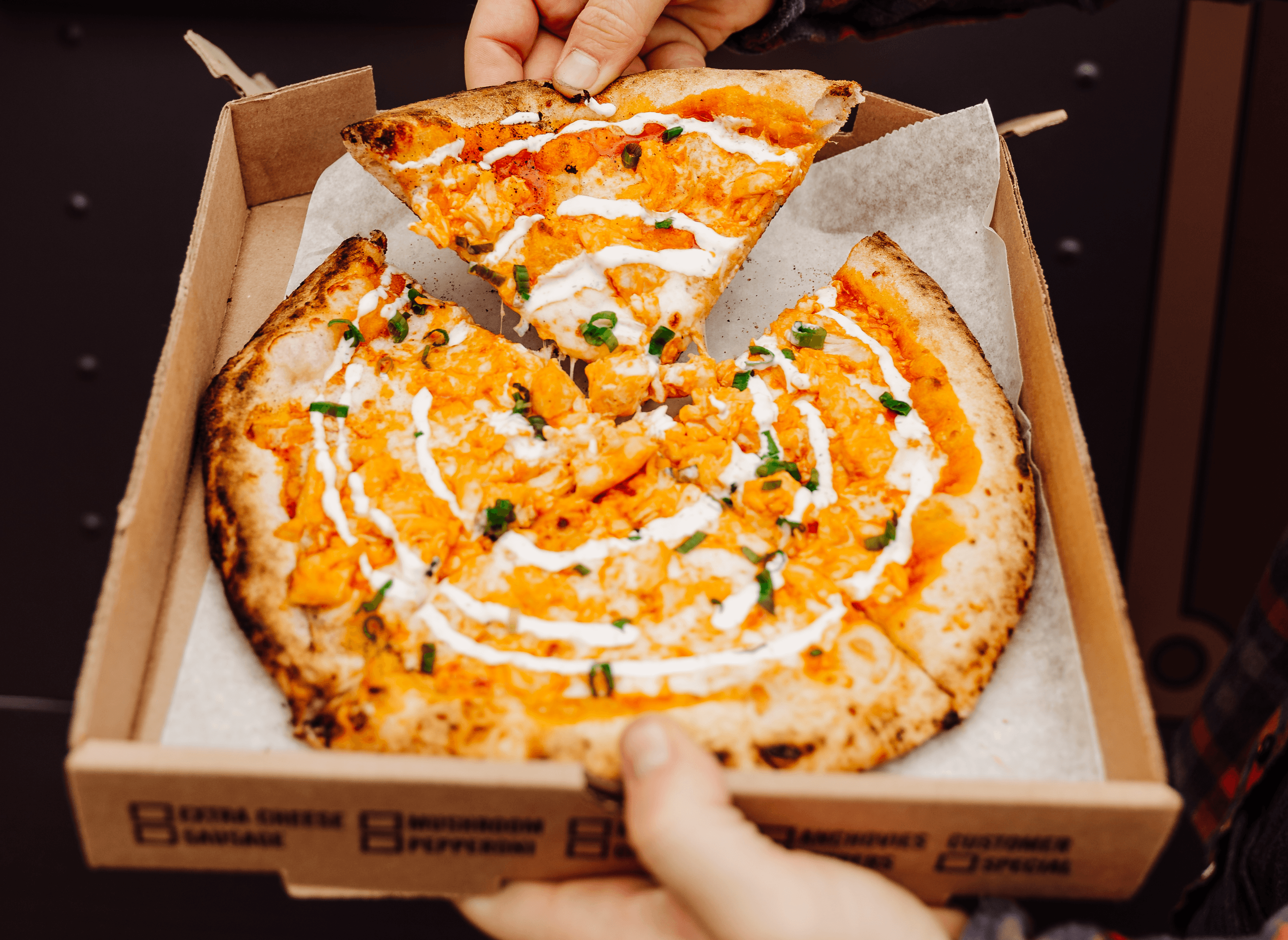 We ensure all guests are fed. We offer a dedicated service line for guests with dietary restrictions, ensuring a specific GF or DF option is added to your continuous pizza rotation.